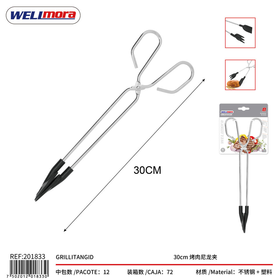 WELImora Pinze in Nylon da 30cm con Impugnatura in Acciaio Inox, Accessorio per Barbecue e Grigliate