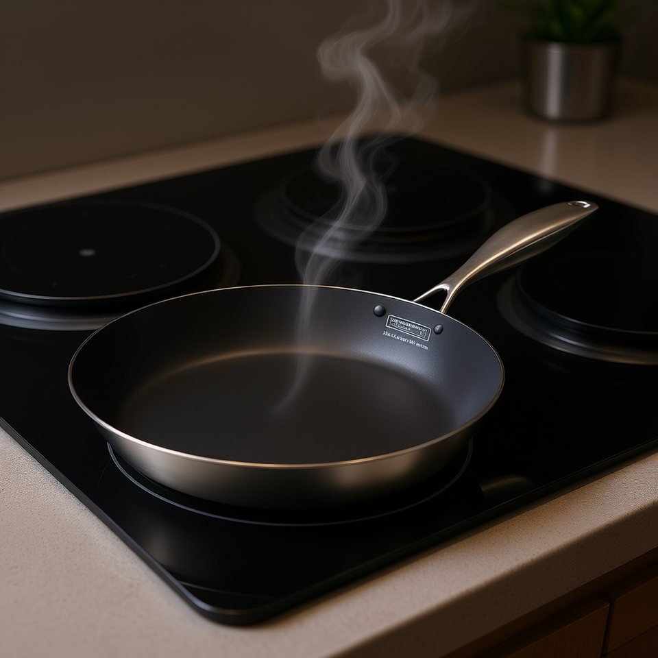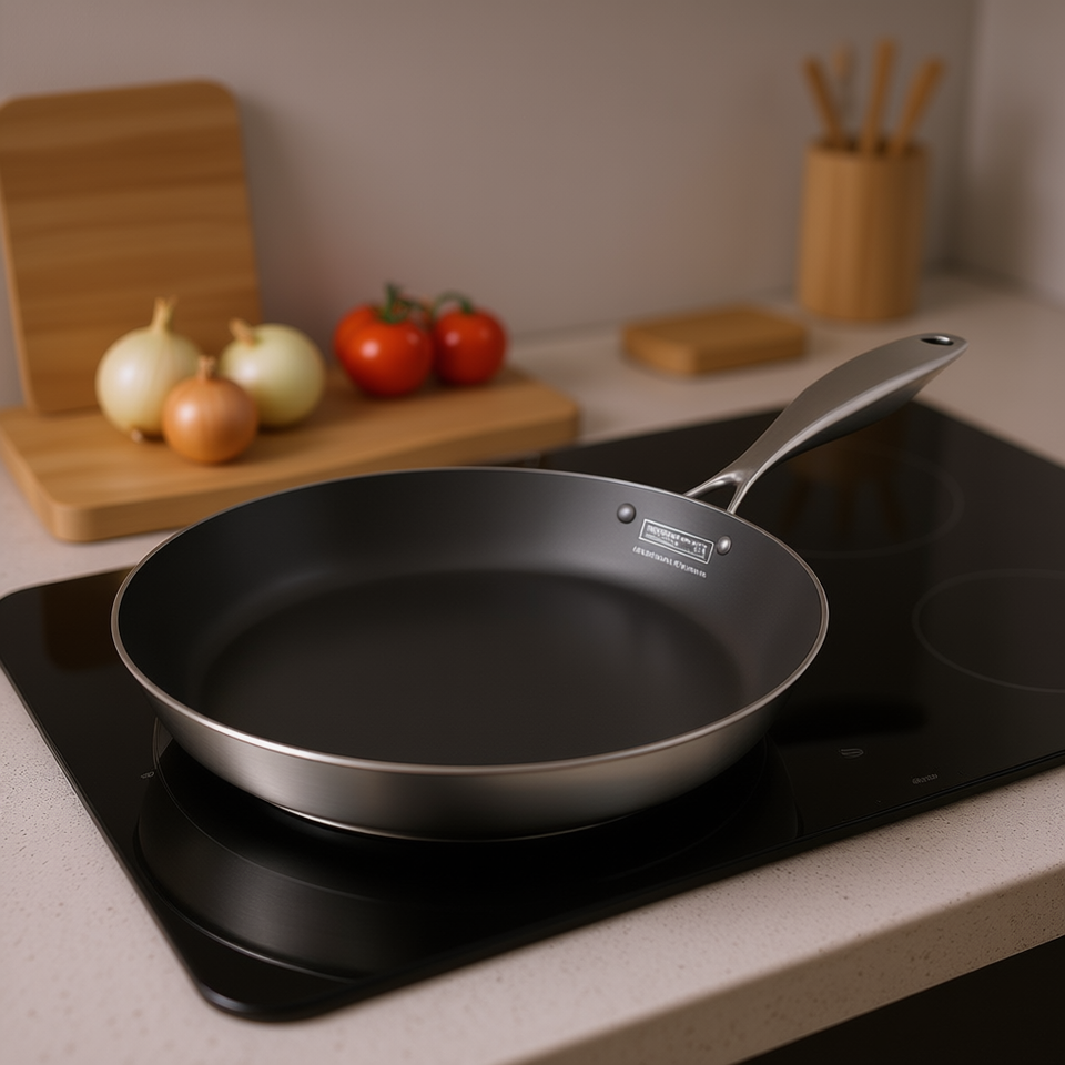 Padella in Acciaio Inox 30cm Antiaderente Compatibile con Induzione Design Minimalista Solo Lavaggio a Mano