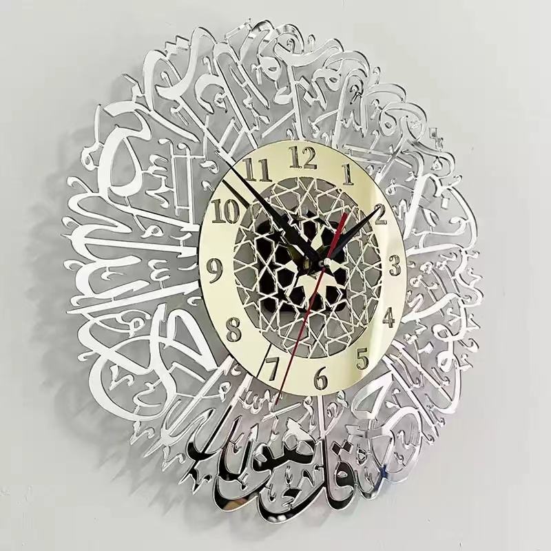 Orologio da parete con numeri arabi Vintage da 30cm decorazioni per la casa specchio acrilico calligrafia arte orologio da parete islamico da 12 pollici