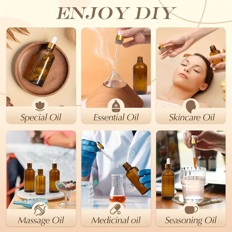 30ml 1Oz 50ml 100ml piatto rotondo ambra vetro contagocce bottiglia di vetro con tappo contagocce dorato per olio essenziale