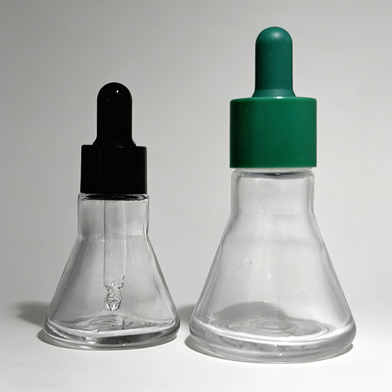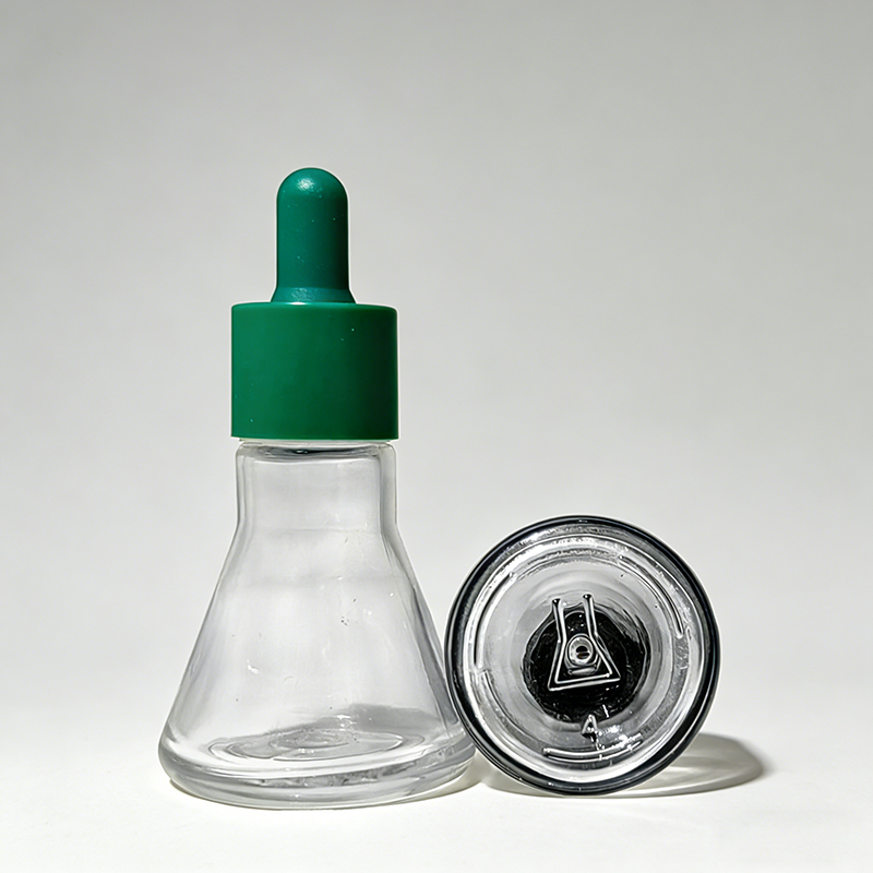 Flacone Contagocce in Vetro Trasparente da 30ml con Tappo Verde, Bottiglia Vuota per Cosmetici, Oli Essenziali, Profumi e Prodotti per la Cura della Pelle
