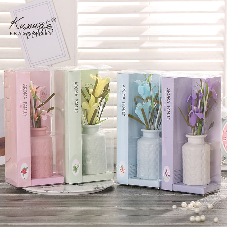 Diffusore di Aromi Personalizzabile da 30ml con Bastoncini Floreali, Bottiglia in Ceramica, Profumo Naturale con Oli Essenziali per Arredamento Casa