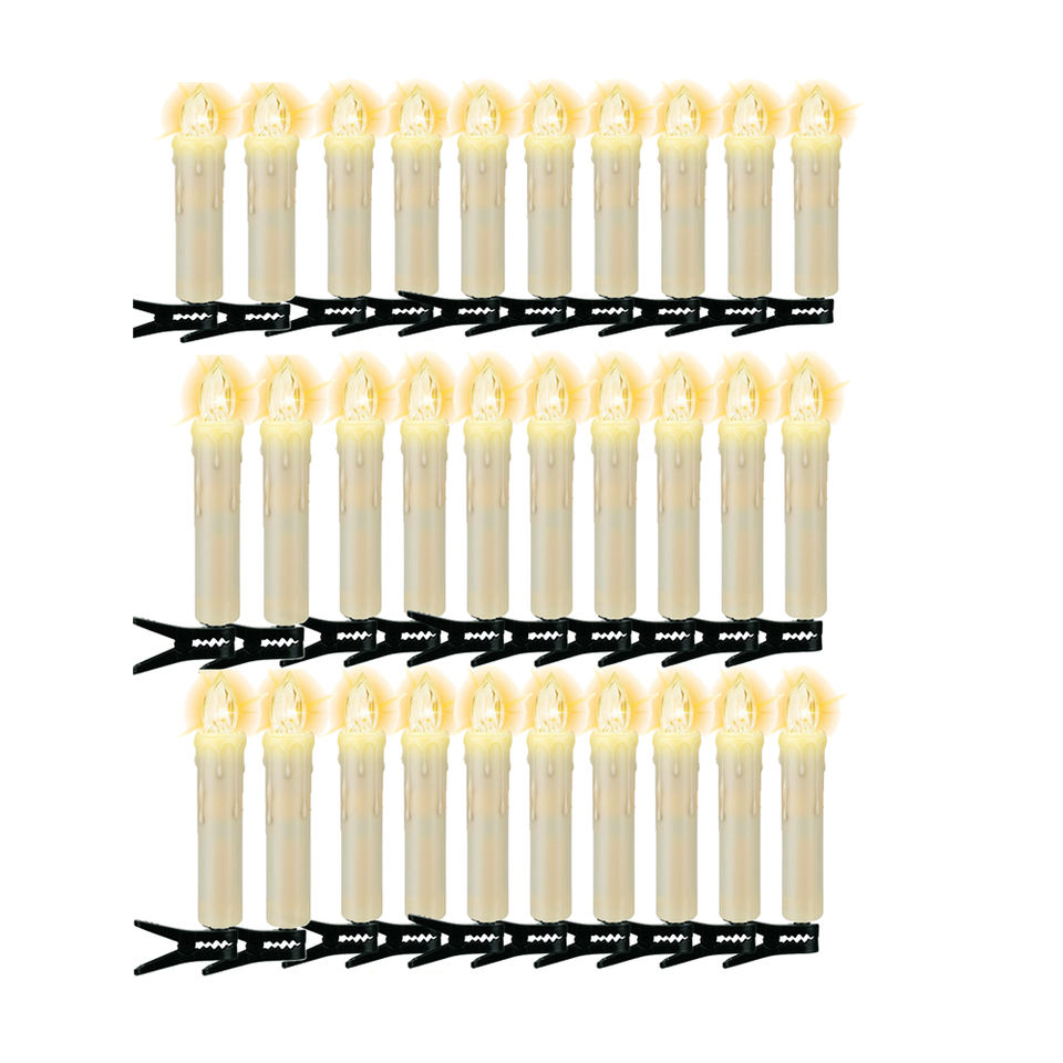 Package listi:30PCS Candles, 30pcs Clamps, 1 Remote Control(1 CR2450 battery is included), 30pcs Waterproof Circle, 1 Owner's Manual.