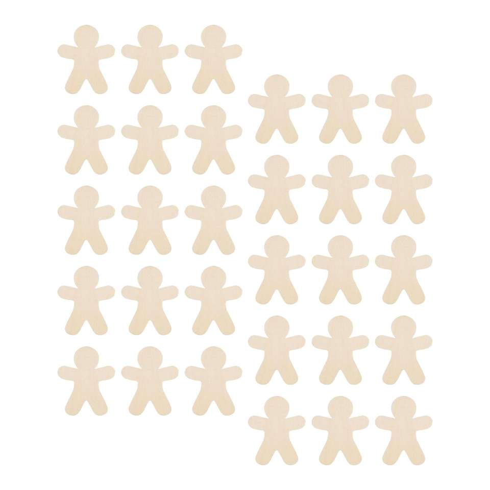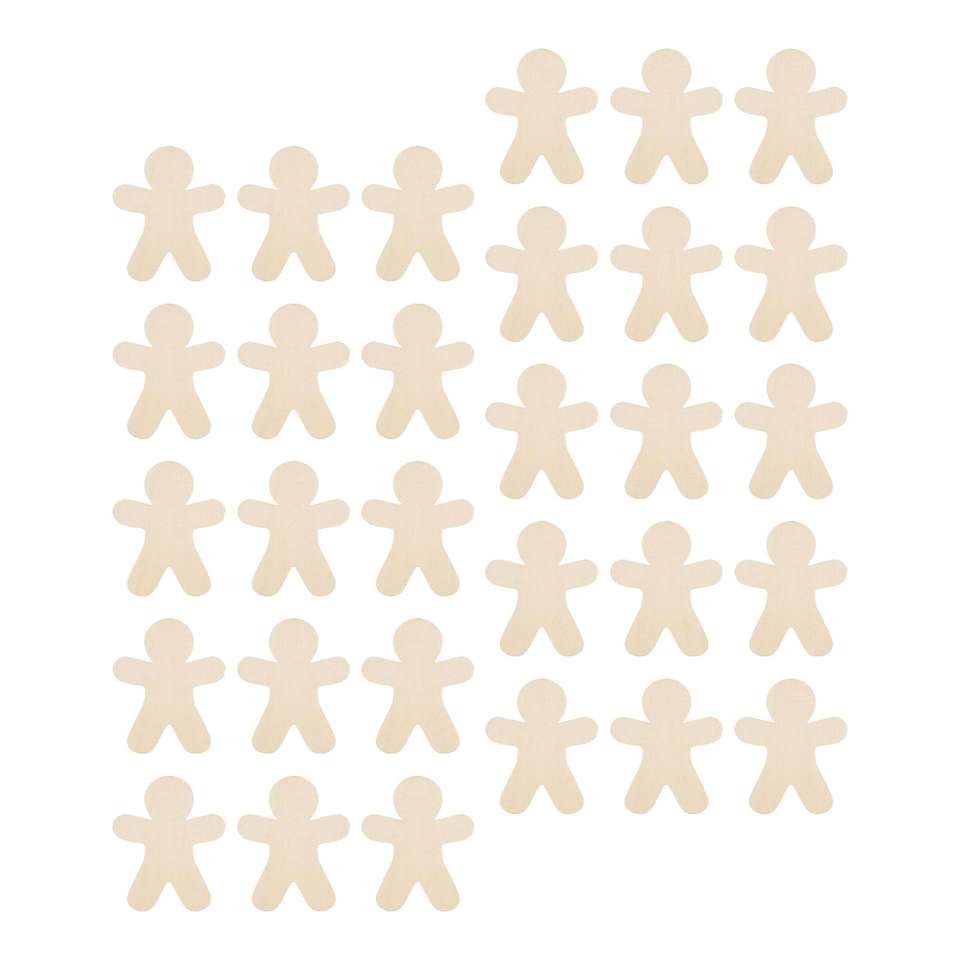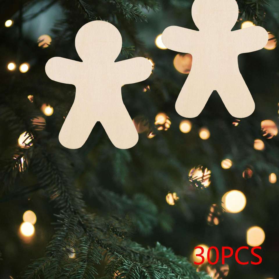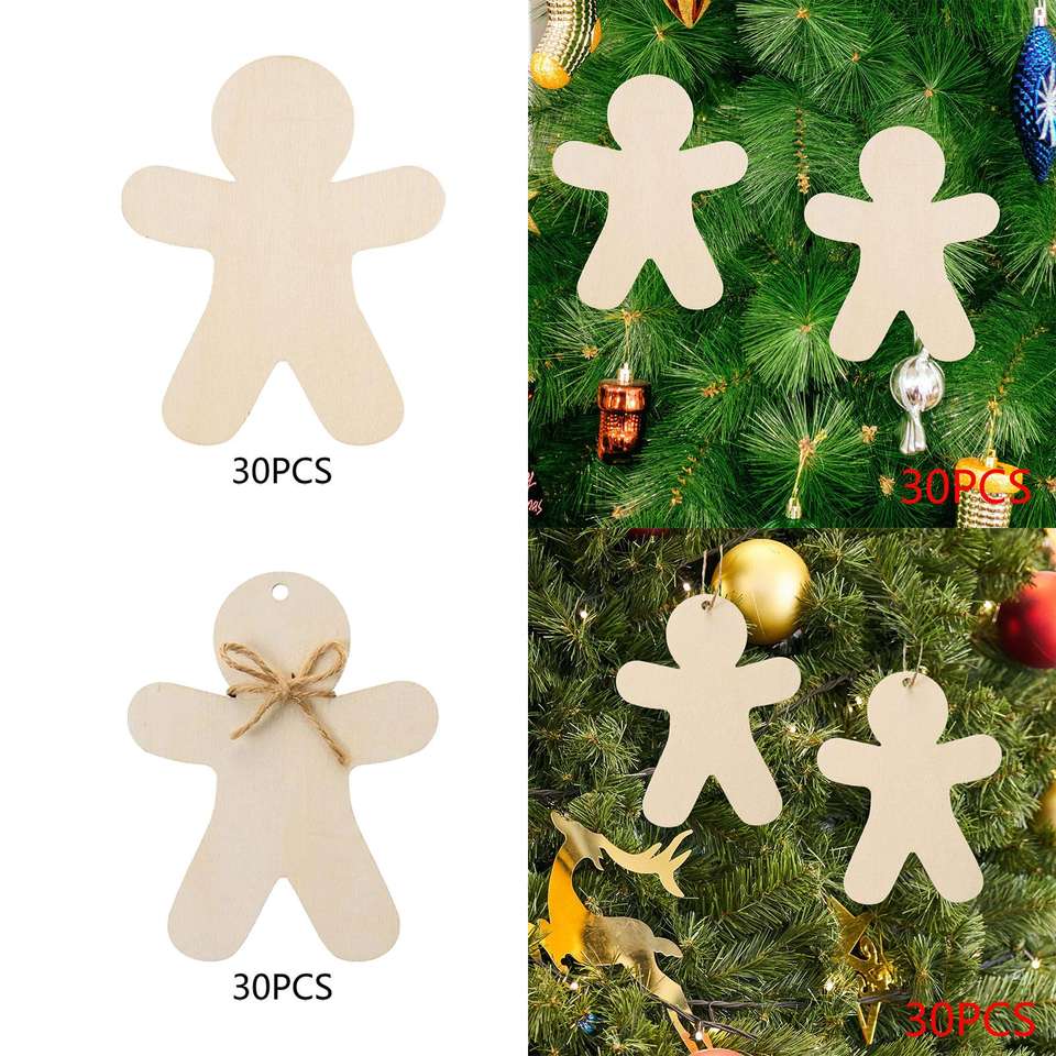 30pcs Unpainted DIY Gingerbread Man Slices Bamboo and Wood Crafts for Drawing Xmas Halloween Decorations Without Hole