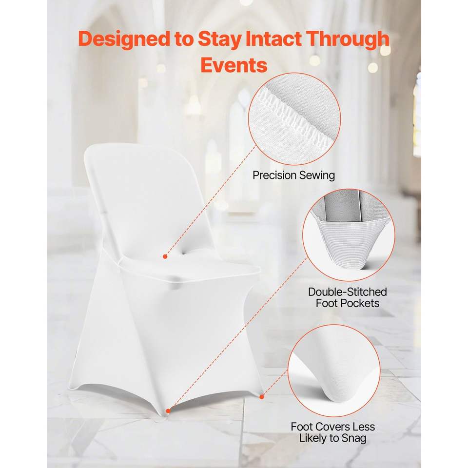 30 Coprisedie Bianchi in Poliestere Spandex Elasticizzati con Fronte Piatto per Banchetti, Cene, Feste e Matrimoni