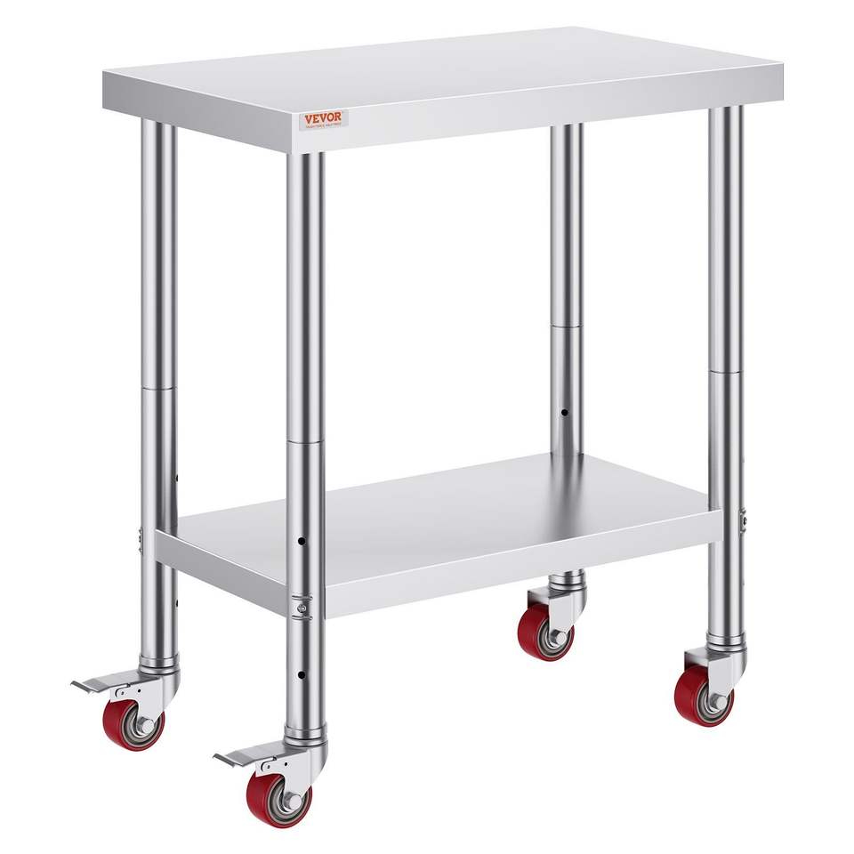 30x18x34 Inch Heavy Duty Commercial Kitchen Worktable Stainless Steel 3-Stage Adjustable Shelf 4 Wheels Brake for Food Prep Work