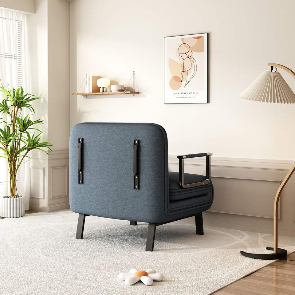 Poltrona Letto Convertibile 31,5 Pollici, Divano Pieghevole a Tre Sezioni con Schienale Regolabile e Cuscino, Chaise Longue per il Relax, Struttura in Acciaio Resistente