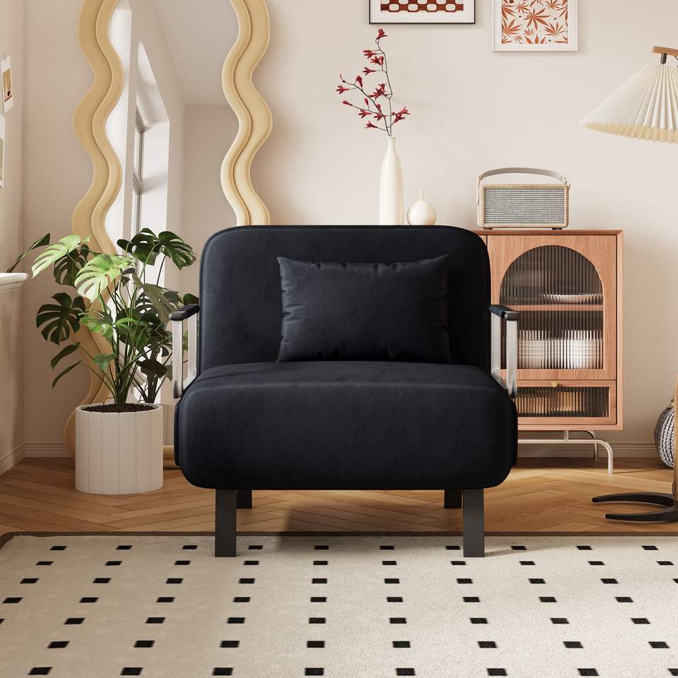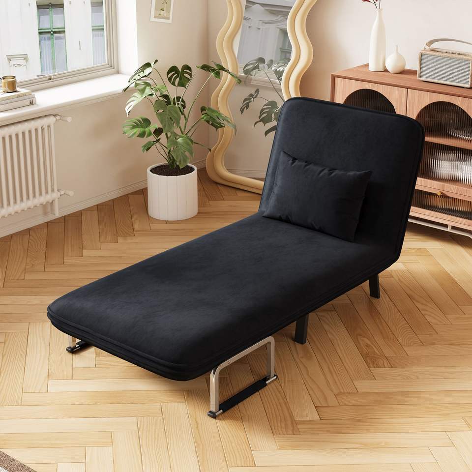 Poltrona Letto Convertibile 31,5 Pollici, Divano Pieghevole a Tre Sezioni con Schienale Regolabile e Cuscino, Chaise Longue per il Relax, Struttura in Acciaio Resistente