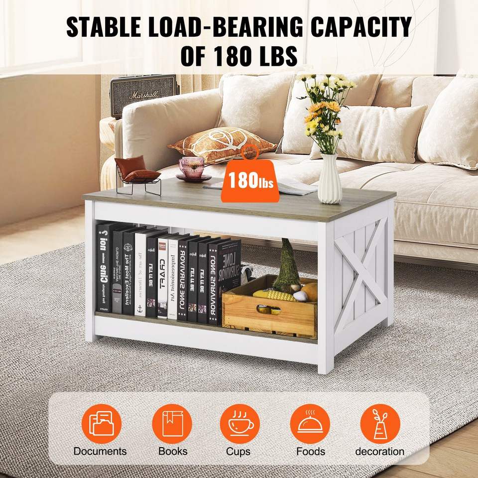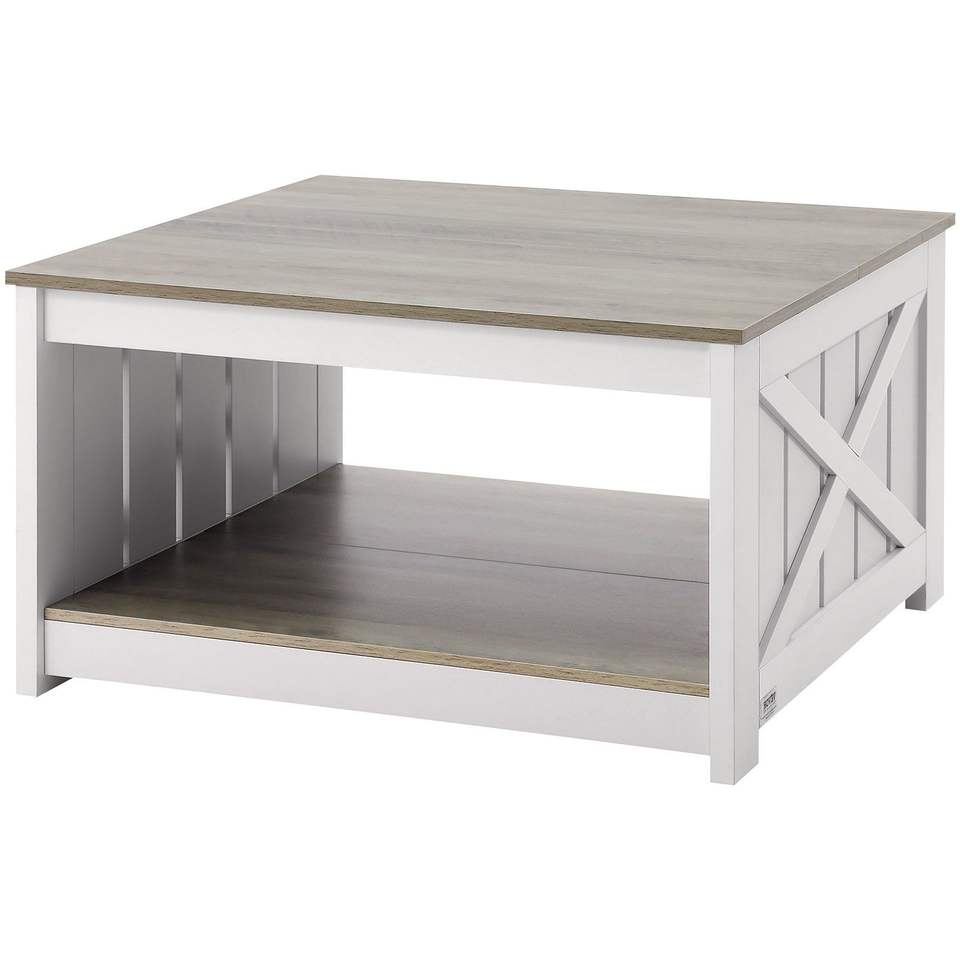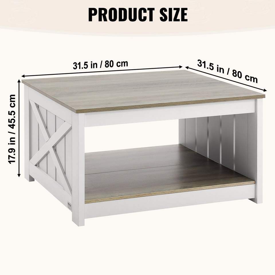 Tavolino da Caffè Quadrato Stile Fattoria da 80 cm con Vano Portaoggetti Aperto, Tavolo da Cocktail Rustico in Legno per Soggiorno