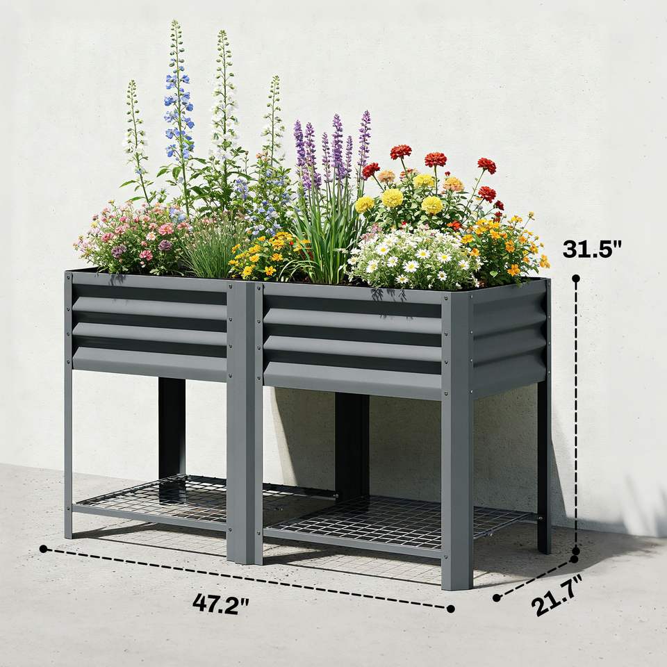 Fioriera rialzata in acciaio zincato grigio scuro da 80 cm con ripiano portaoggetti e rivestimento interno per giardino e stoccaggio