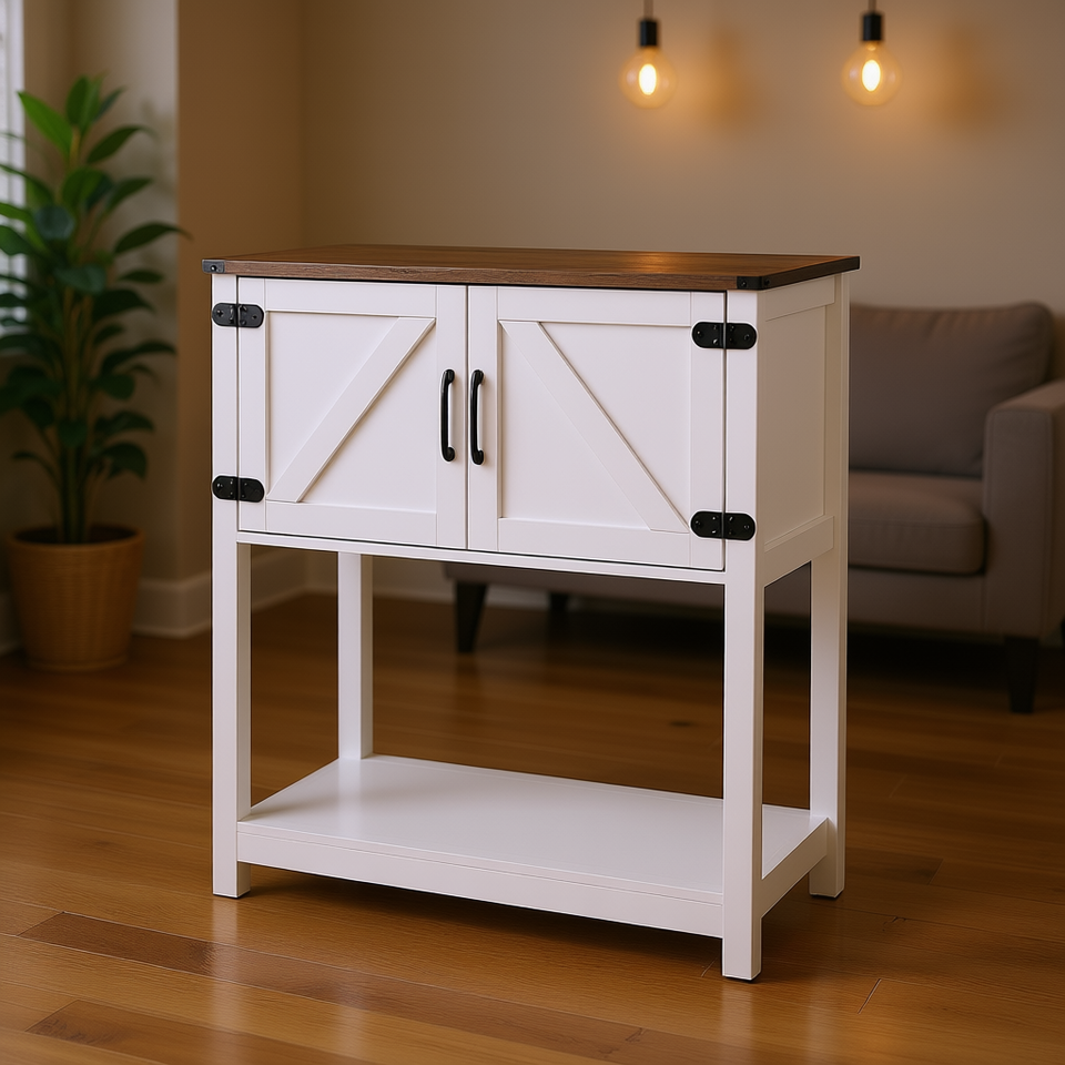 Mobile Bar Caffè Stile Rustico 80 cm Bianco con Top Marrone Ante Magnetiche Credenza Buffet per Cucina Soggiorno