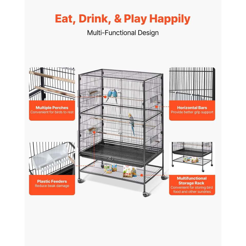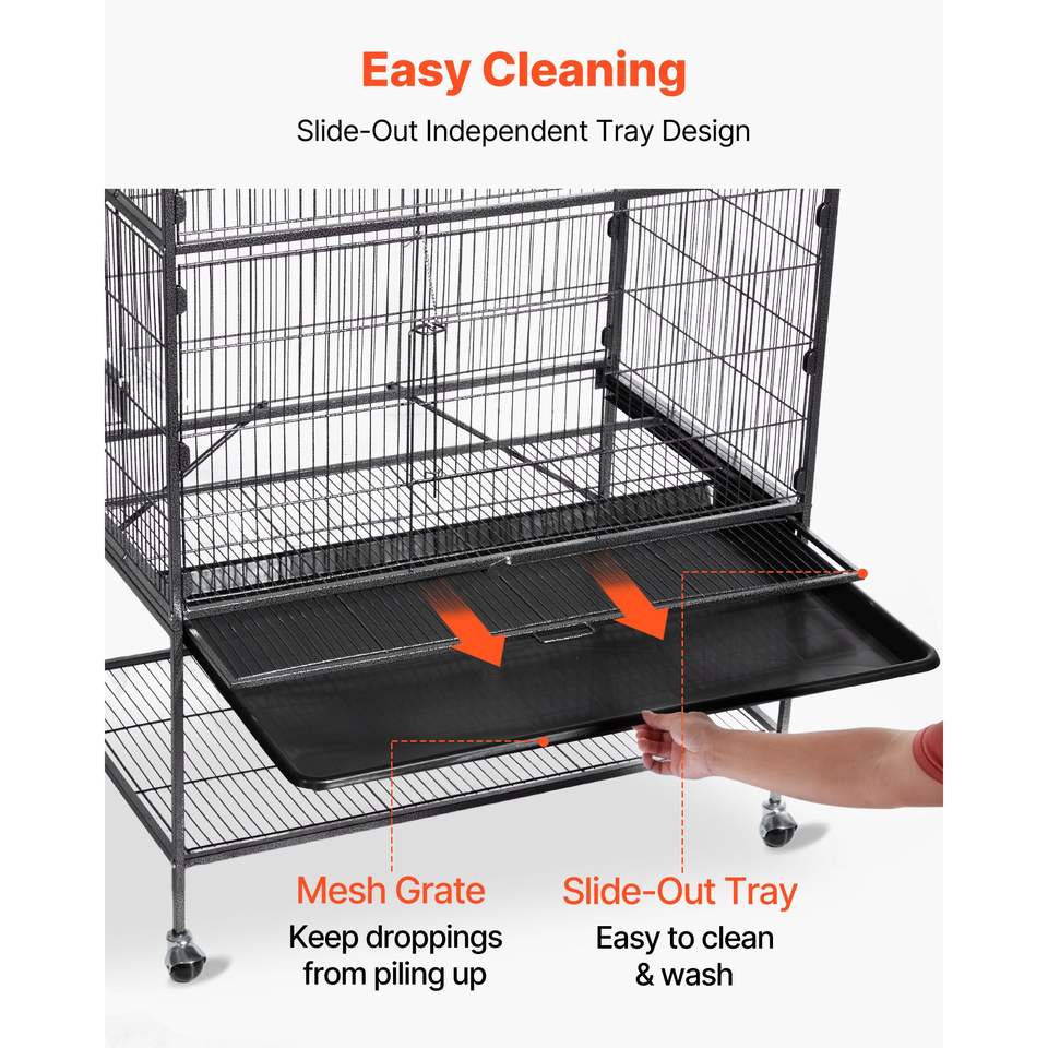 Gabbia per Uccelli in Ferro Battuto con Tetto Piatto 31,5 X 20,5 X 52 Pollici, Posatoi e Vassoio Estraibile, Mangiatoie in Plastica per Accessori per Uccelli