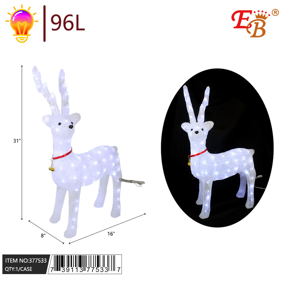 31\" 96L Christmas Decorative Lighting Single Reindeer with Light for Festive Displays