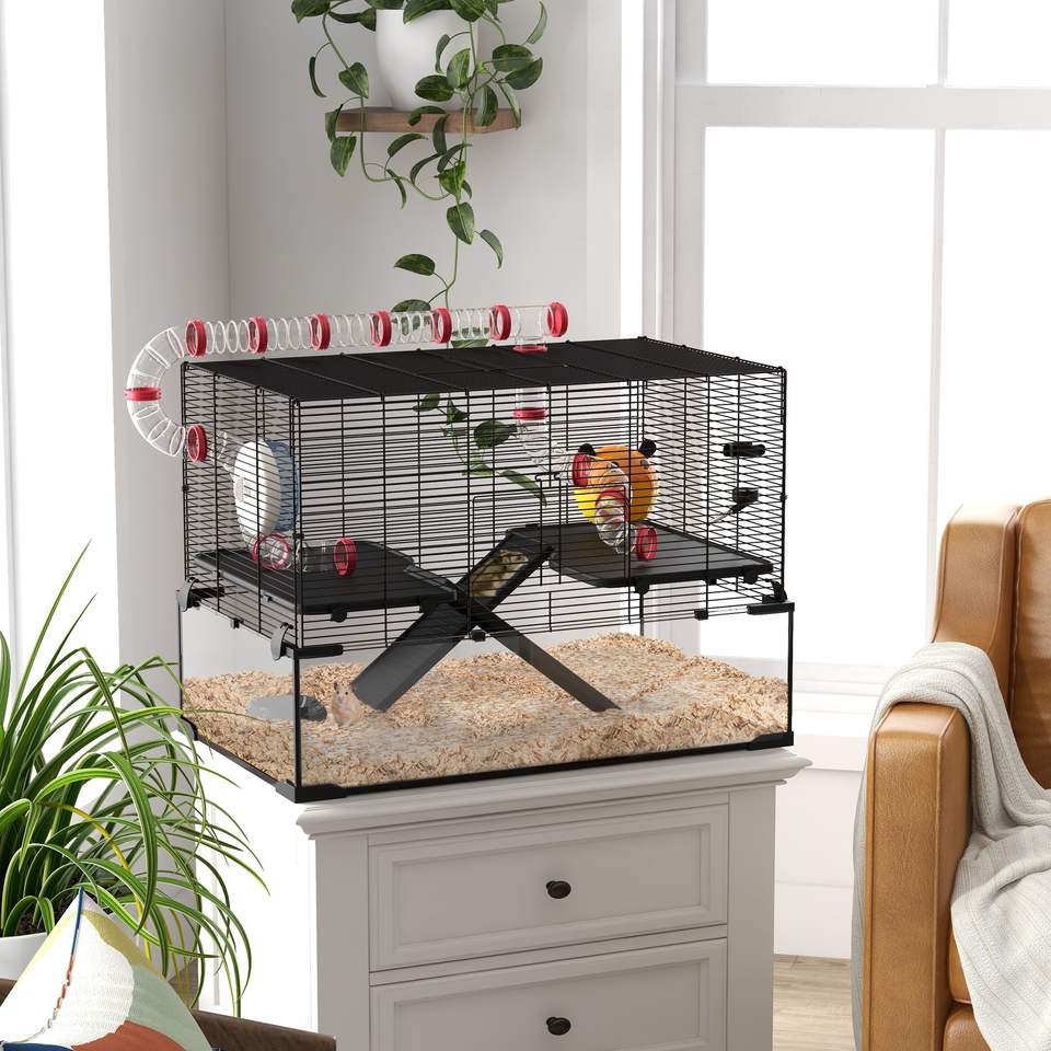 Gabbia per Criceti con Fondo in Vetro Profondo 31 Pollici, con Tubo e Tunnel