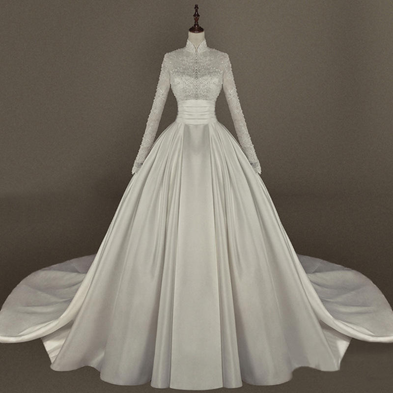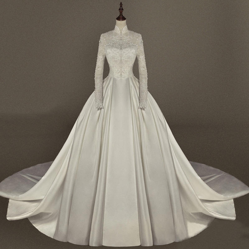 Product Name:Muslim Woman Satin Lace Long Sleeves Bride Modest Wedding Dress