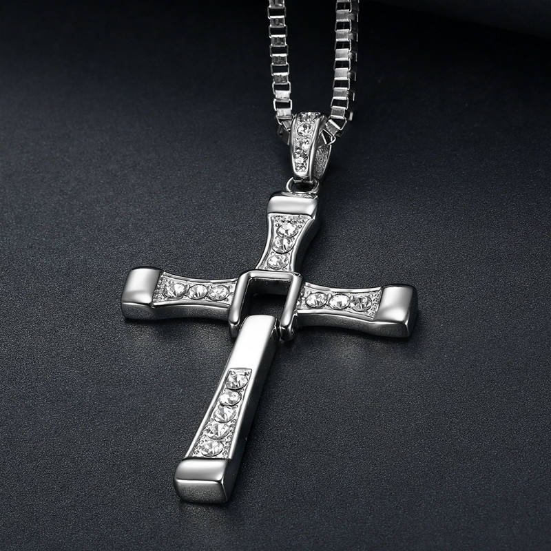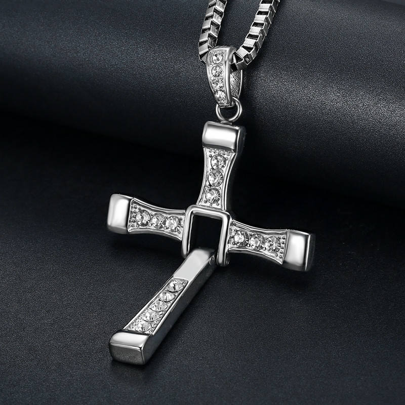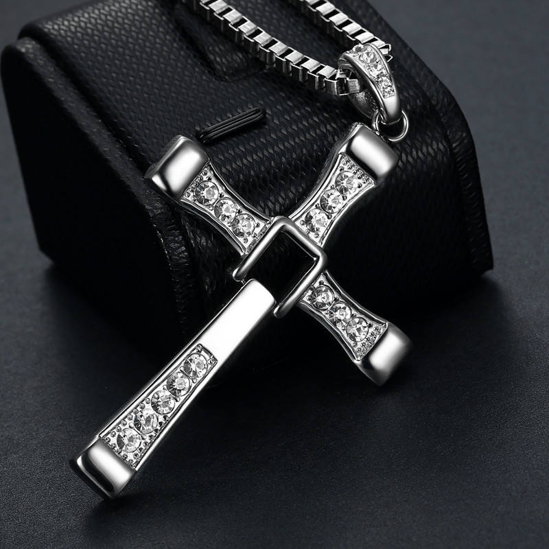 316 Stainless Steel Zircon Cross Necklace Jewelry the Movie Fast and Furious Pendant Dominic Toretto Cross Mens Necklace