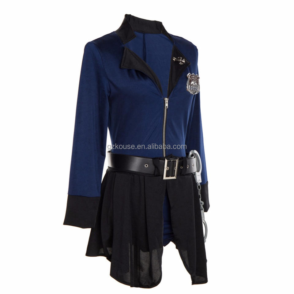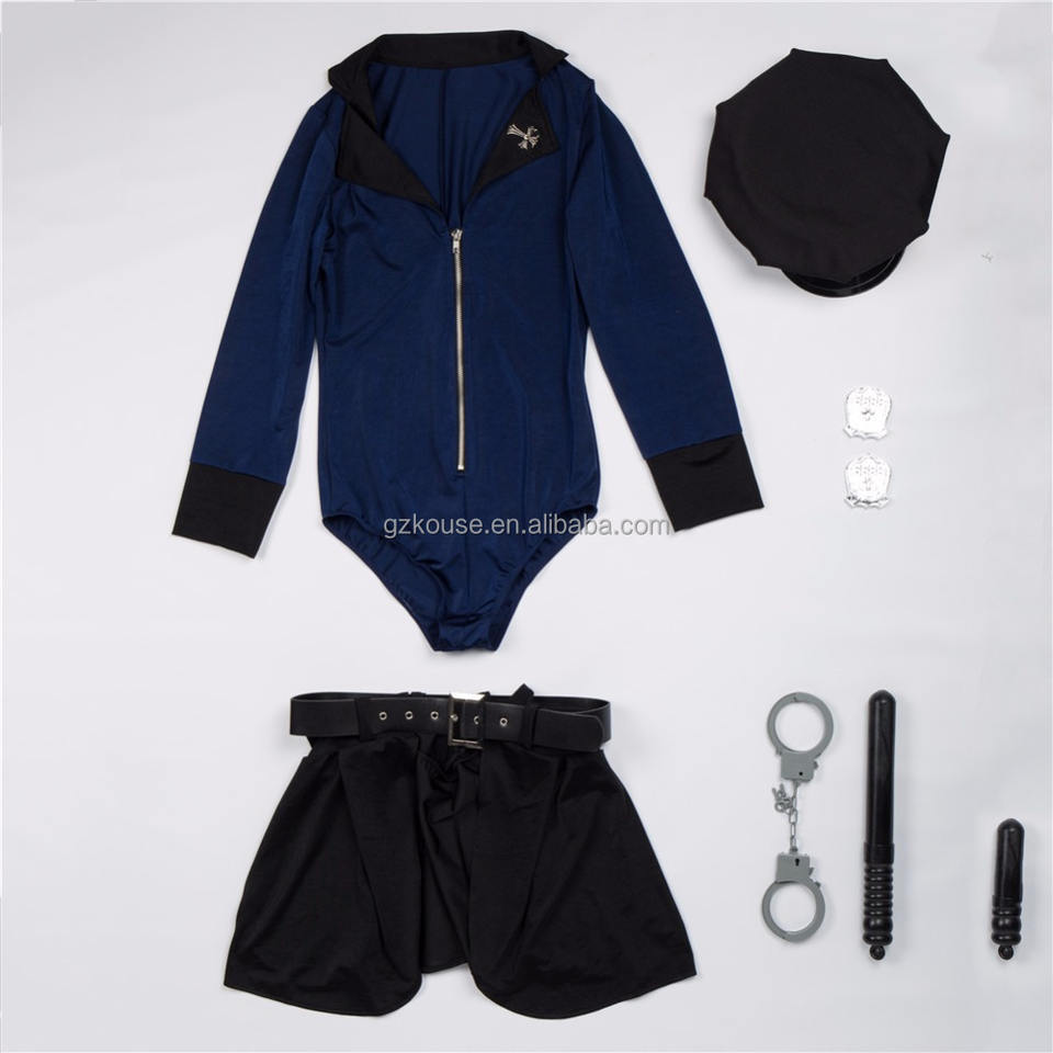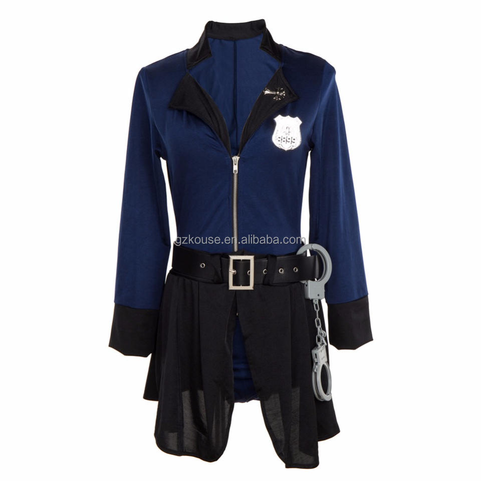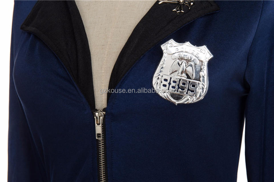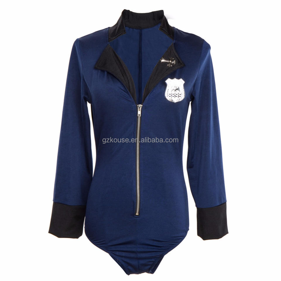 31692 Blue Halloween Sexy Spandex Polyester Traffic Cop Dresses Police Cosplay Uniform for Women Jumpsuits Long Rompers