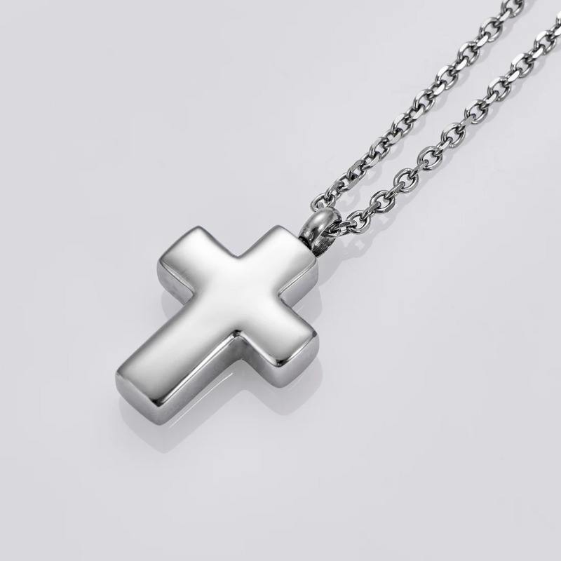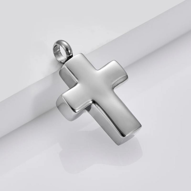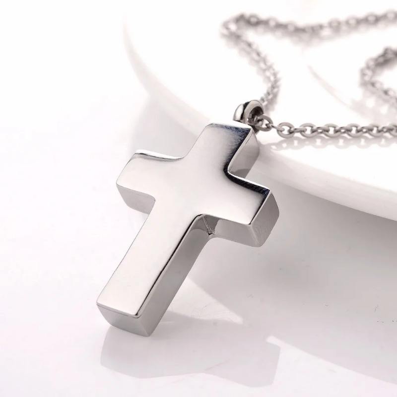 Ciondolo Urna Commemorativa a Croce in Acciaio Inossidabile 316L Placcato Oro con Collana, Gioiello Religioso per Ceneri di Cremazione