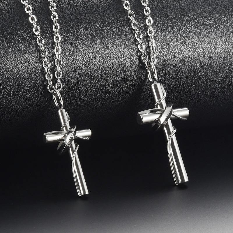 Collana con ciondolo a croce in acciaio inossidabile 316L per coppie, ciondolo a croce dell'amore per uomo e donna, regalo di anniversario.