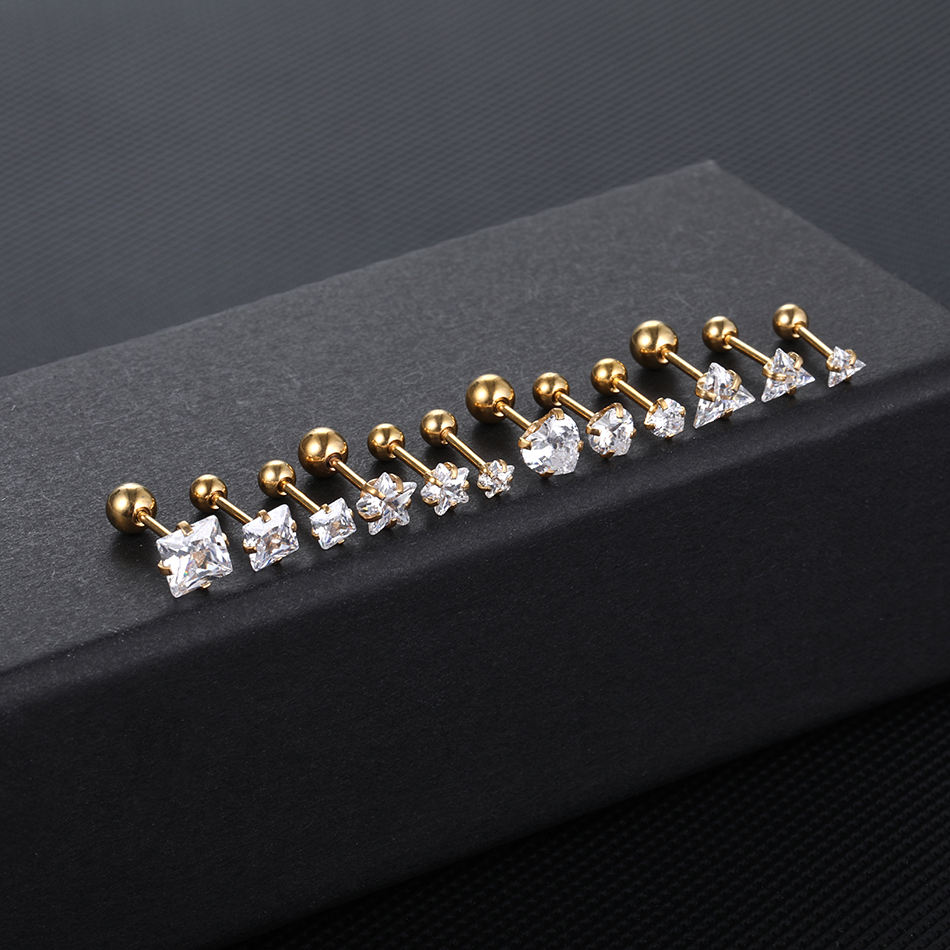 316L acciaio chirurgico oro e argento 20G cartilagine Tragus elica orecchio Piercing orecchino corpo Piercing gioielli con polo Set CZ