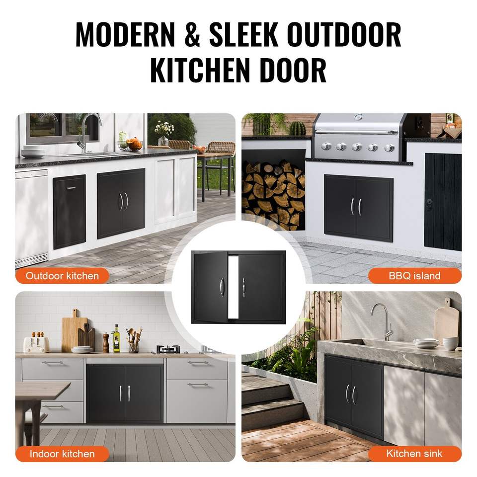 Porta di accesso verticale da esterno per cucina e barbecue, 31W x 24H pollici, con maniglie, design a incasso per piastra fredda, accessori