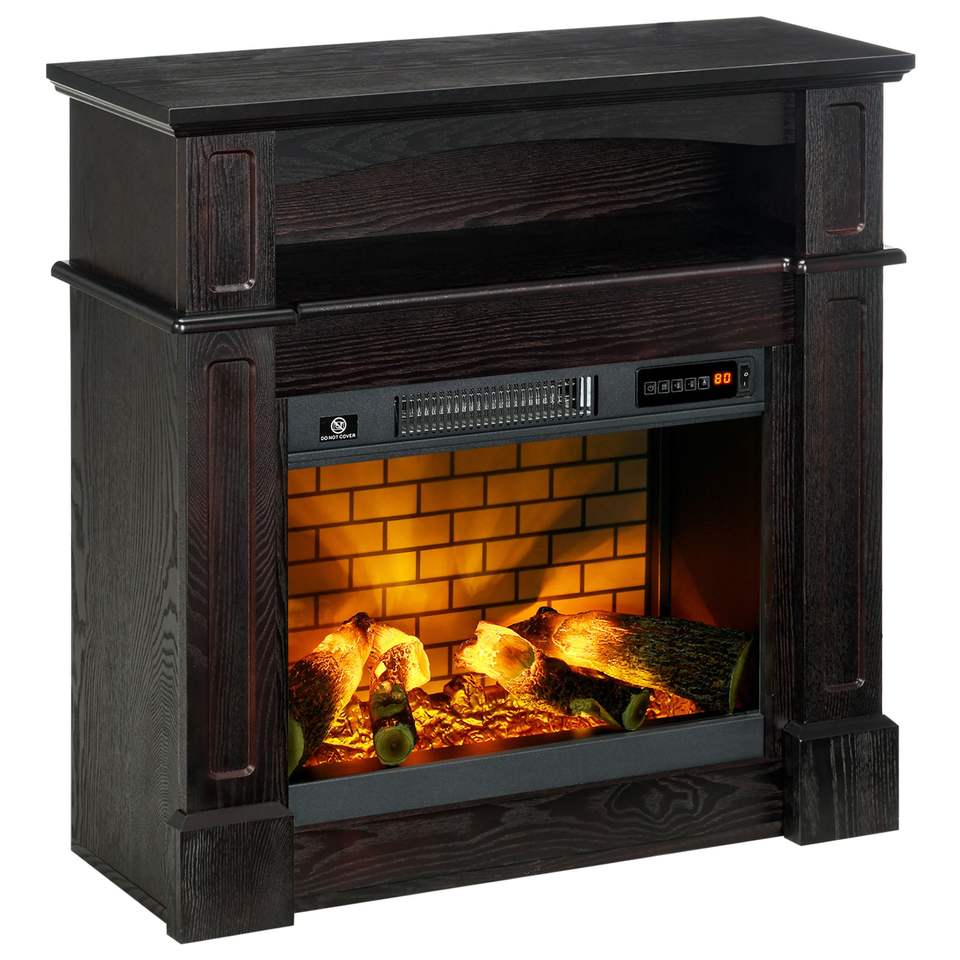Caminetto Elettrico Marrone da 32 Pollici con Fiamma LED, Riscaldatore Indipendente da 1400W, Telecomando e Mensola