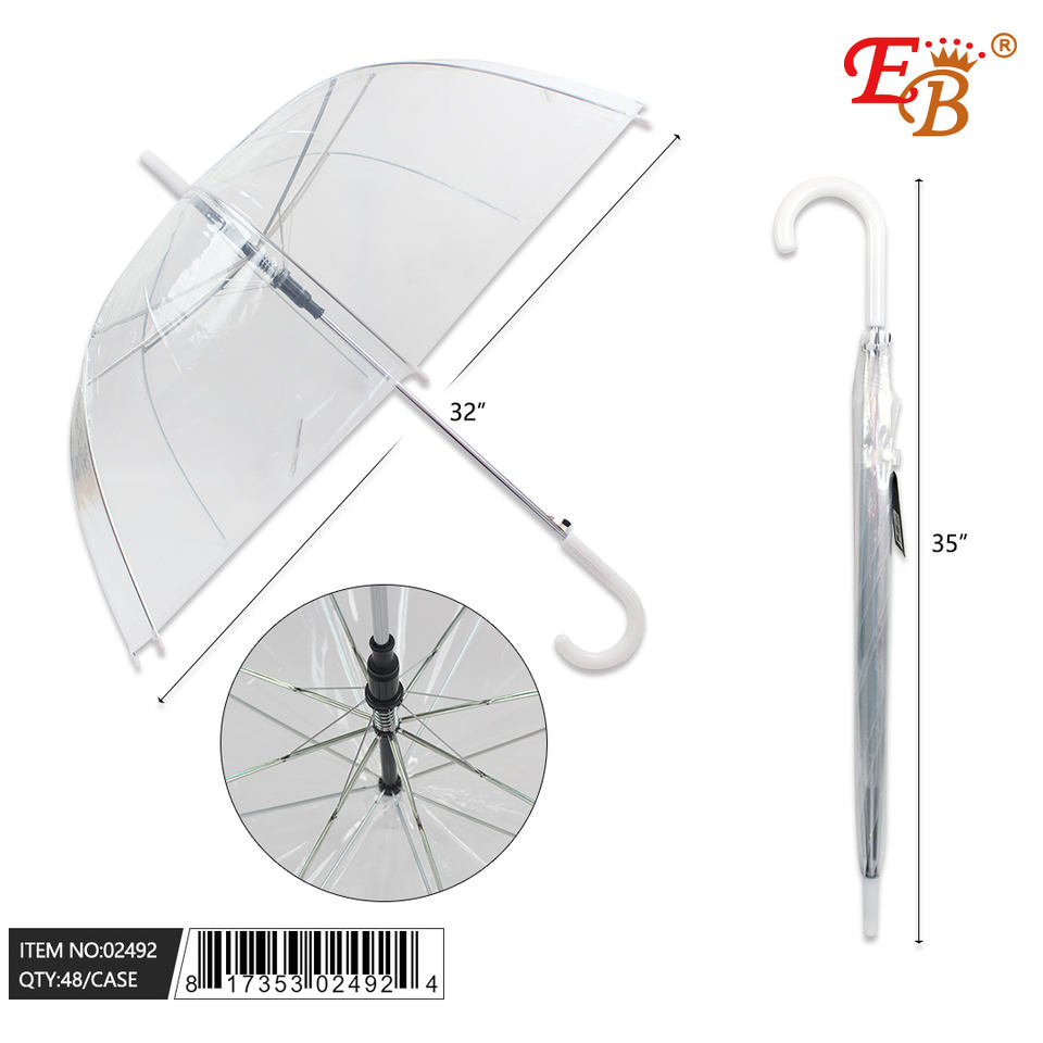 32\" CLEAR TRANSPARENT AUTO OPEN UMBRELLA 48PC/CS Casual Cartoon Design Reverse Inverted Straight Umbrella Customizable Logo