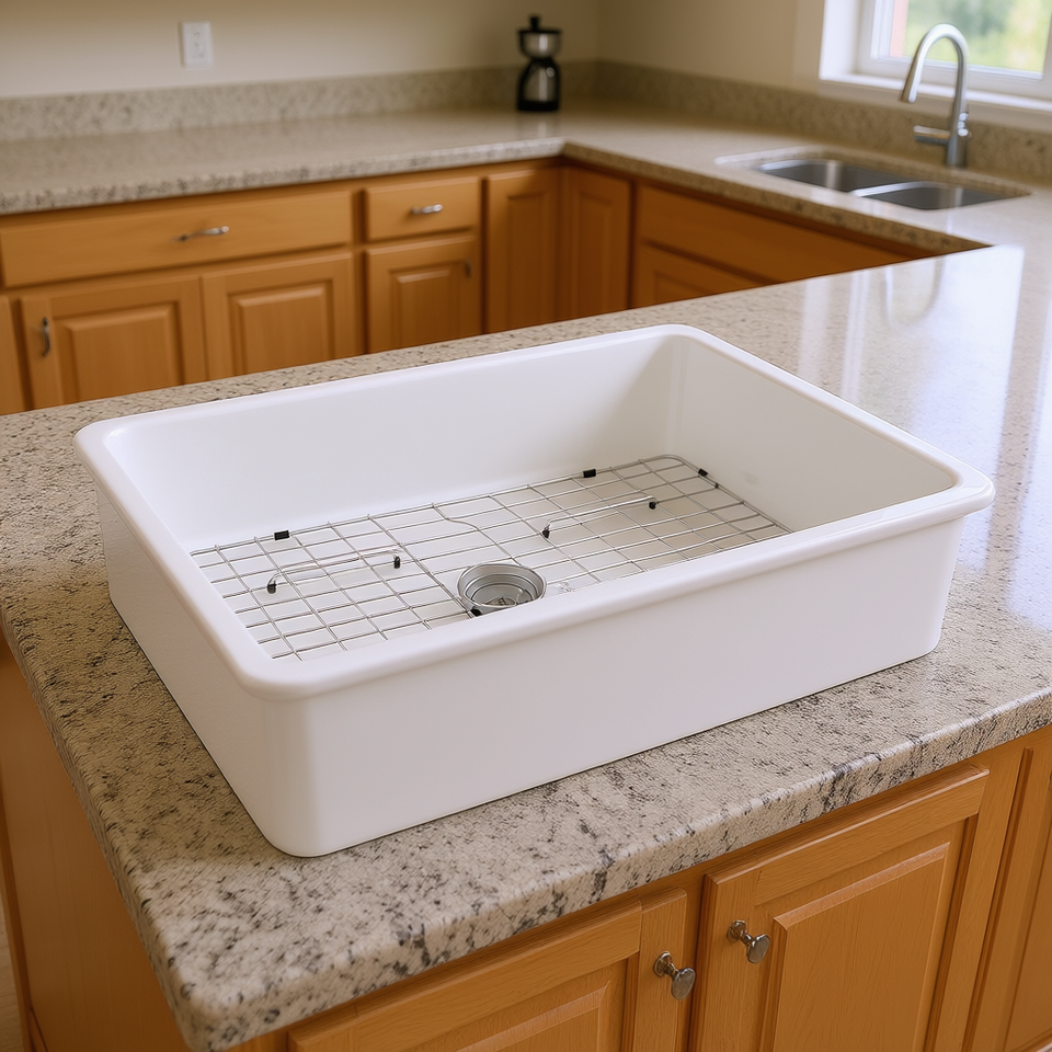 Lavello da Cucina in Ceramica Bianca, Vasca Singola Rettangolare da 32 Pollici, Installazione Sottotop, Finitura Opaca