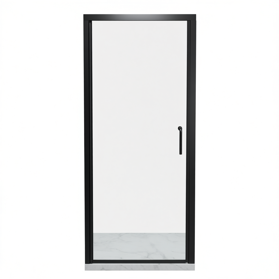 Semi-Frameless Pivot Shower Door 32 To 33-3/8 In X 72 In Matte Black Clear Glass 6mm Thickness Rectangle Design