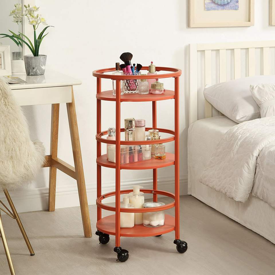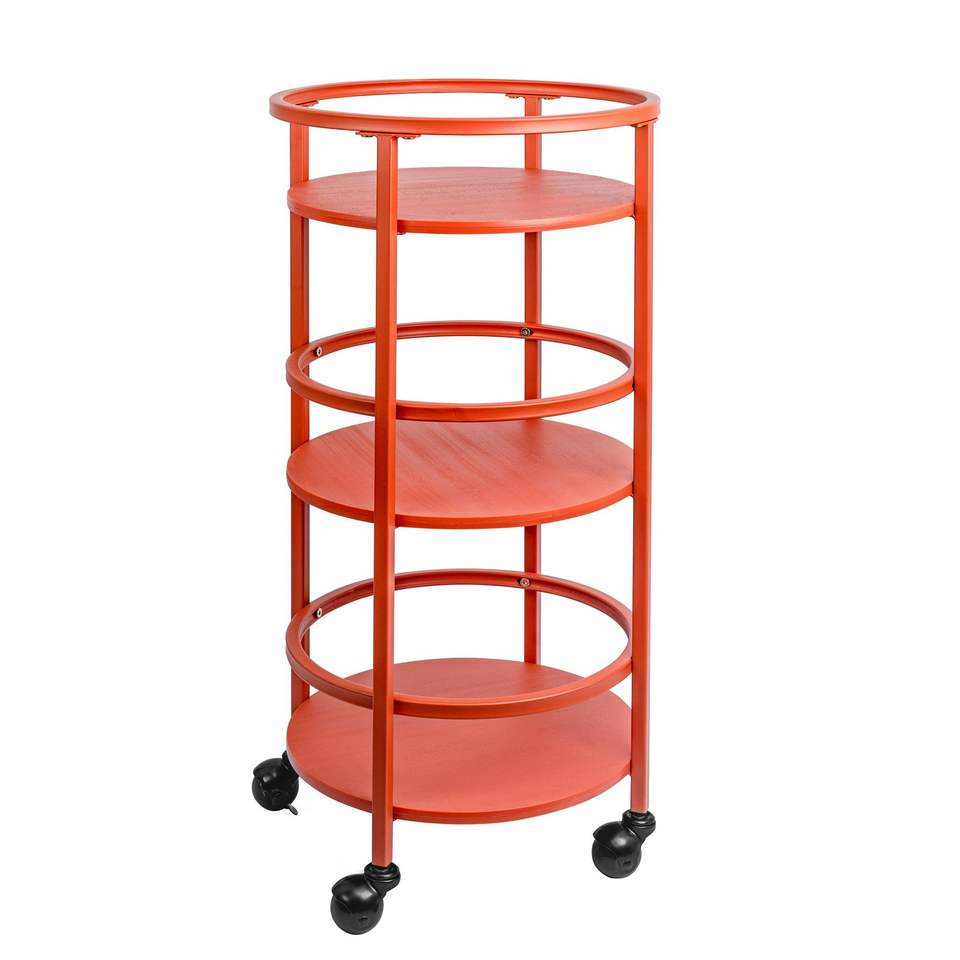 Carrello da Cucina Rotondo Rosso a 3 Ripiani con Ruote, 32 Pollici