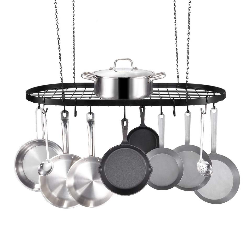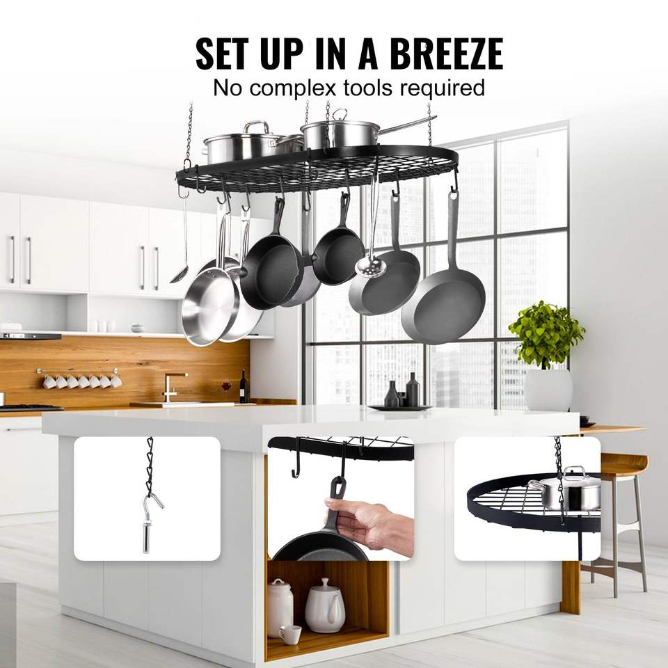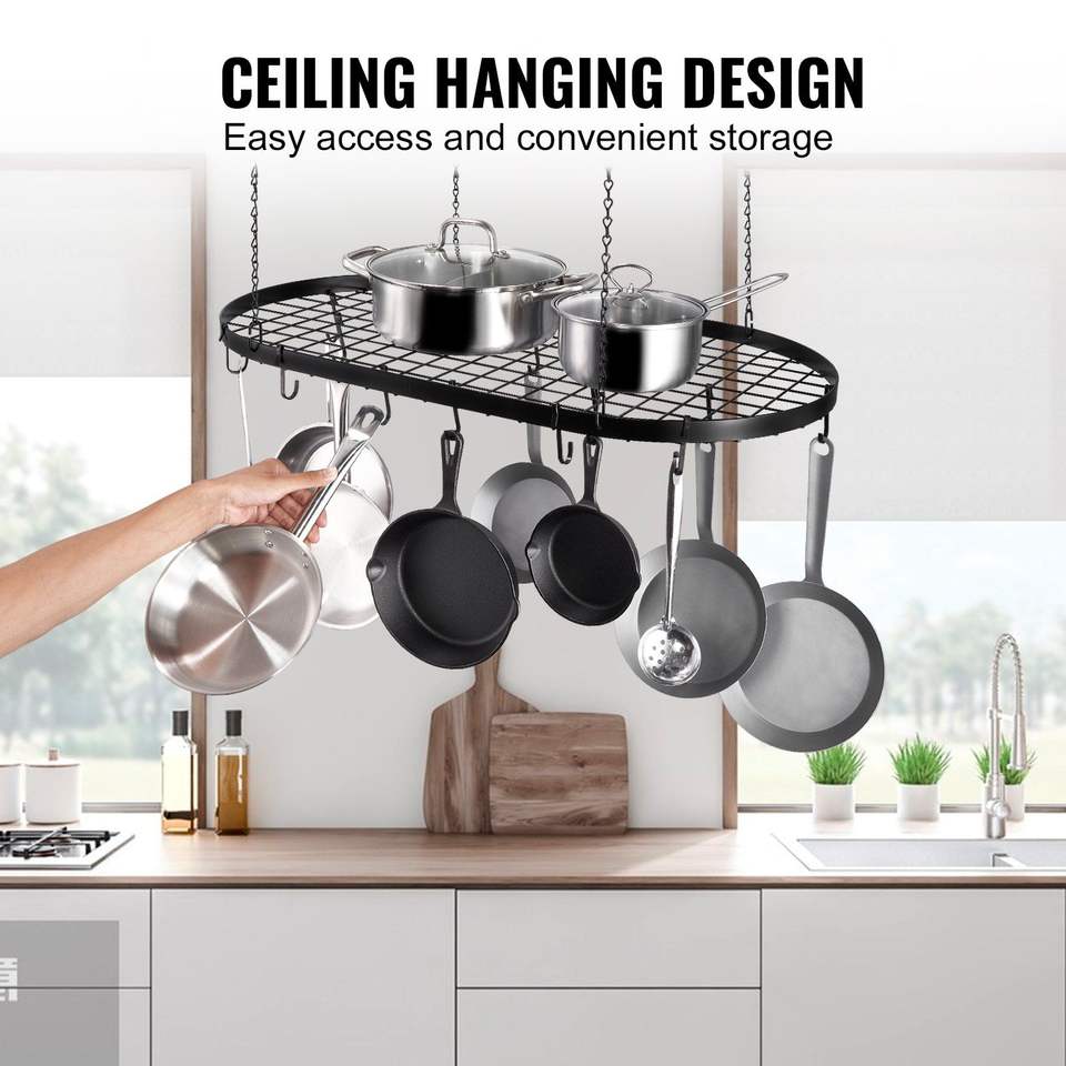 Portavasi Sospeso da 32 Pollici con Montaggio a Soffitto e 12 Ganci a S, Capacità di Carico 80 Libbre, Soluzione di Stoccaggio per Cucina