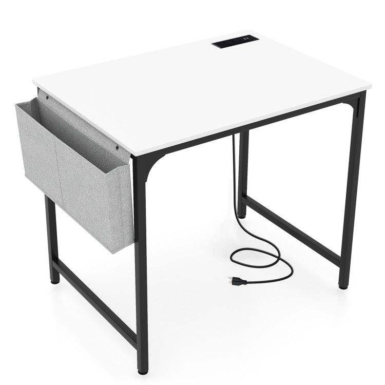 Scrivania per Computer da 32 Pollici per Casa e Ufficio con Stazione di Ricarica, Borsa Portaoggetti e Gancio per Cuffie
