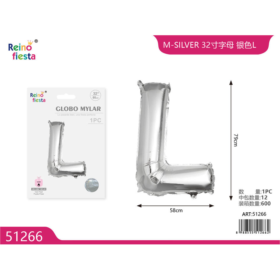 32-Inch Retro Silver 'L' Balloon for Happy Birthday Mother's Day Graduation Chinese New Year Parties and Events