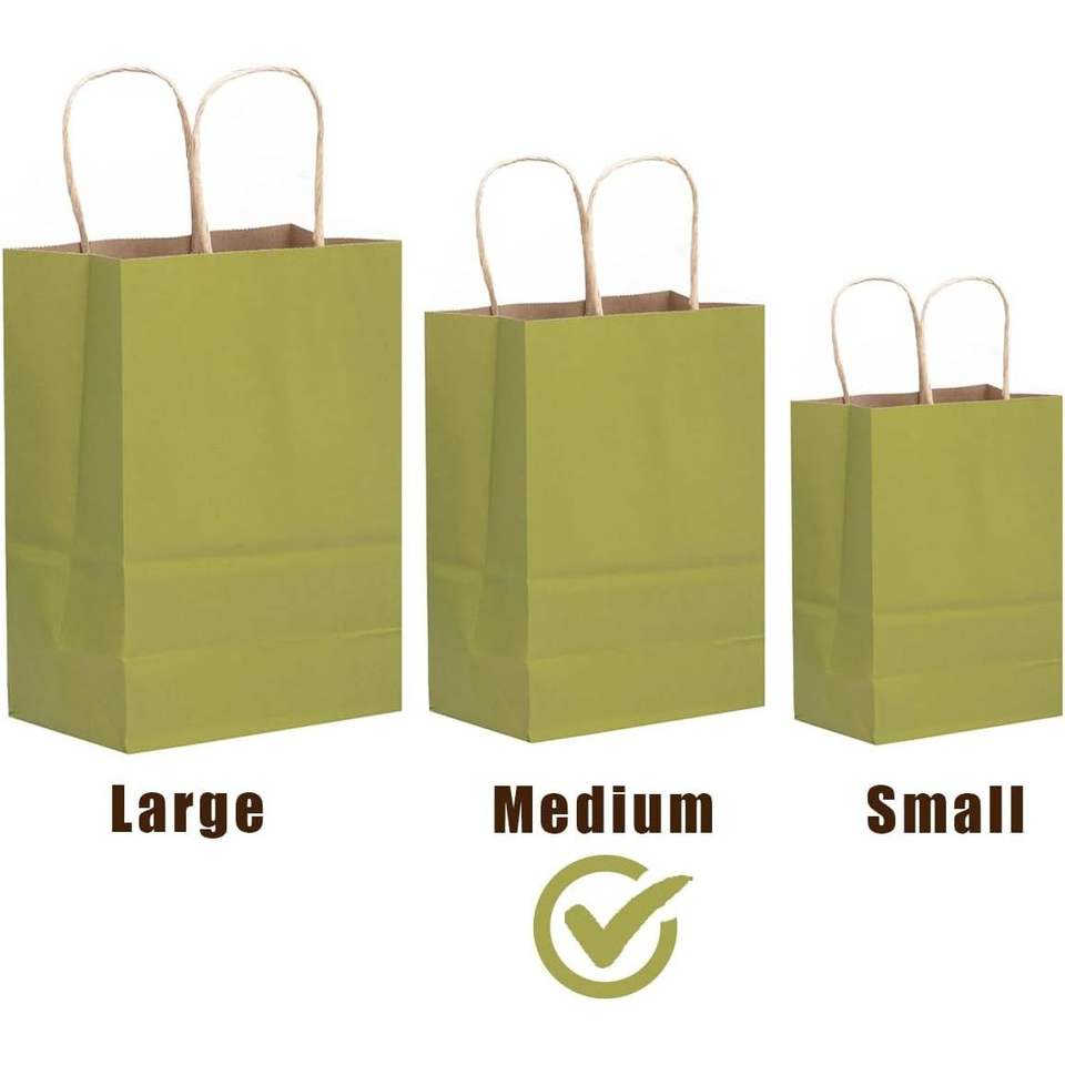 Confezione da 32 Sacchetti Regalo in Carta Verde Foresta di Medie Dimensioni con Manici 19,3x12x26,7 cm, Forniture Promozionali per Feste, Usi Multipli