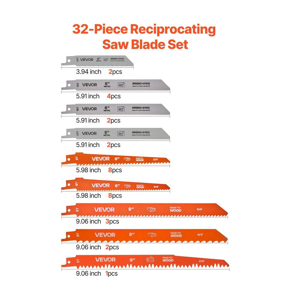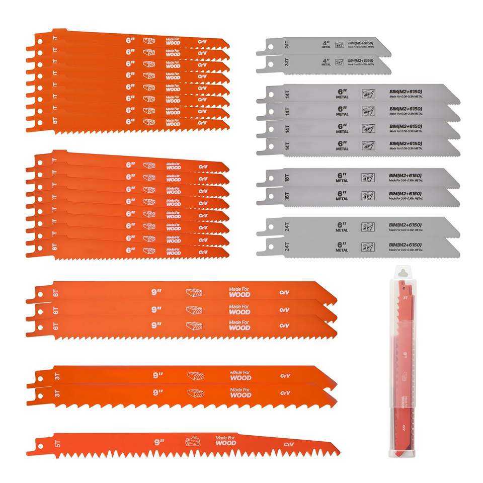 Set di 32 Lame Bimetalliche per Sega a Gattuccio con Attacco Universale, Varie Misure per Metallo e Legno
