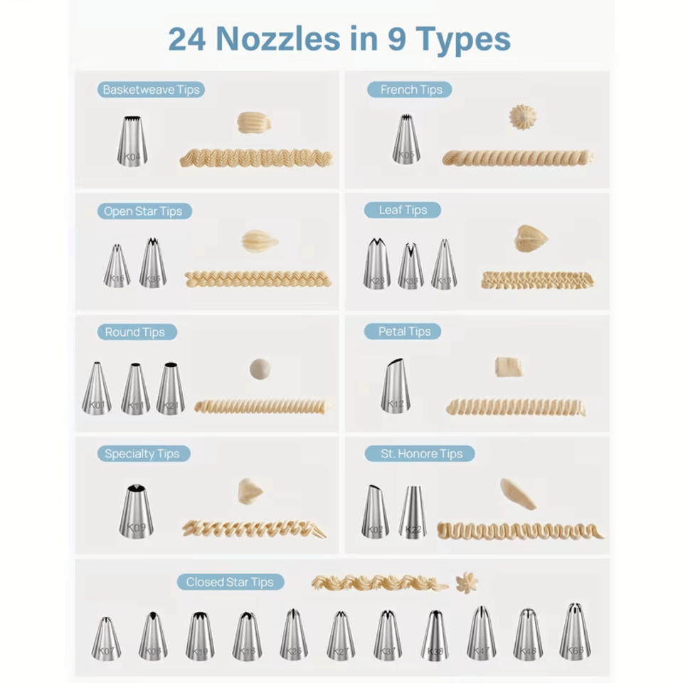 Set di 32 Pezzi per Decorazione Torte con 24 Beccucci per Glassa e 2 Sacche Riutilizzabili da 30 cm