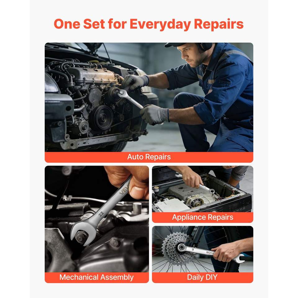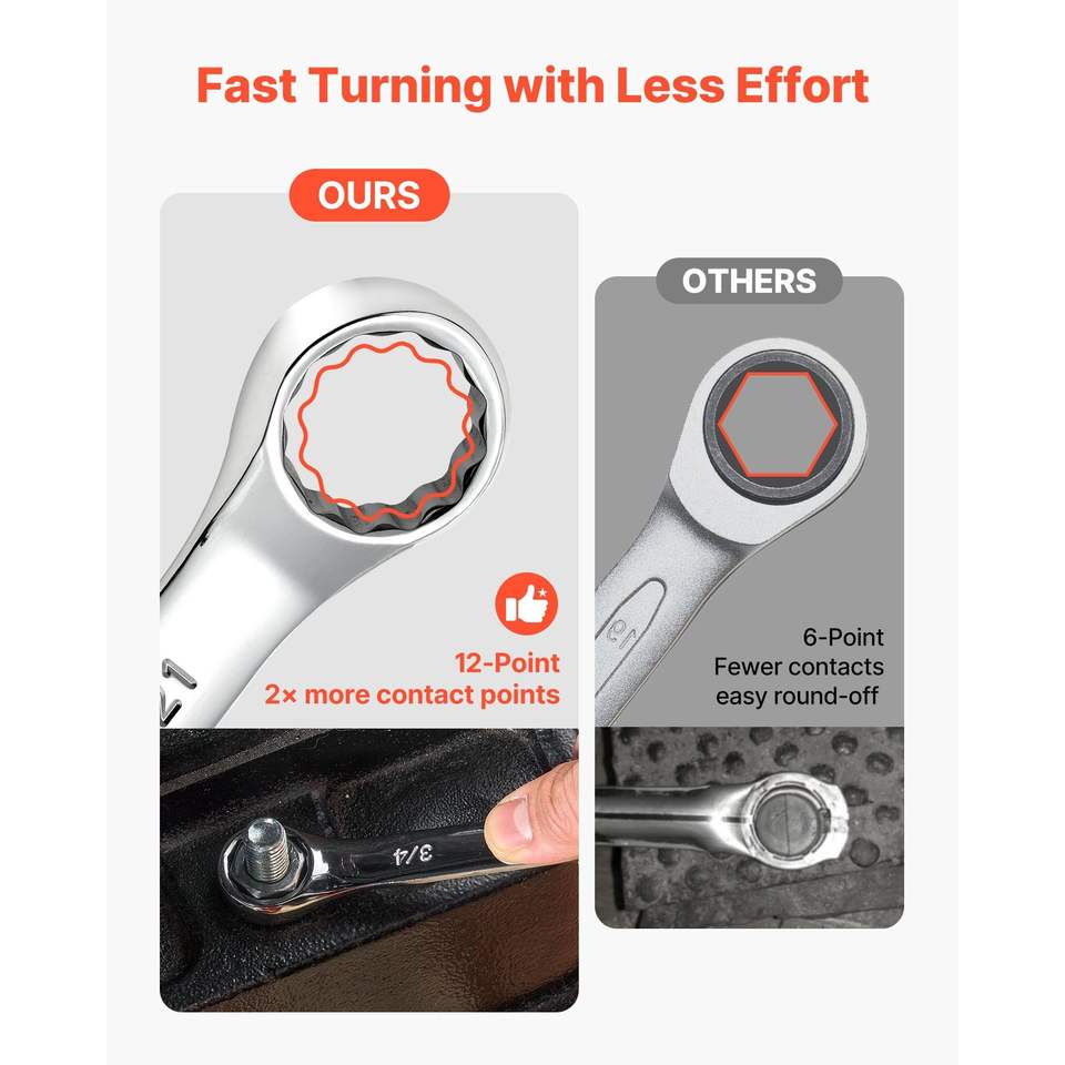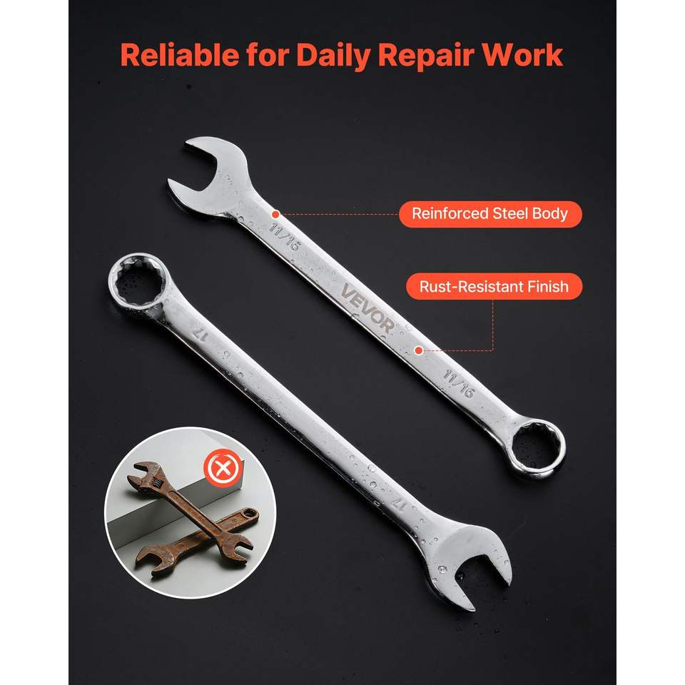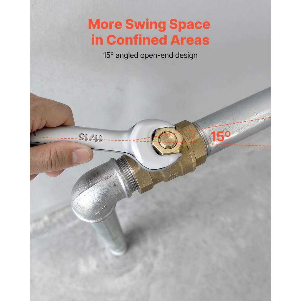 Set di chiavi a bussola a 12 punte SAE/metriche da 32 pezzi, chiavi combinate angolate a 15 gradi con estremità aperta, in rotolo