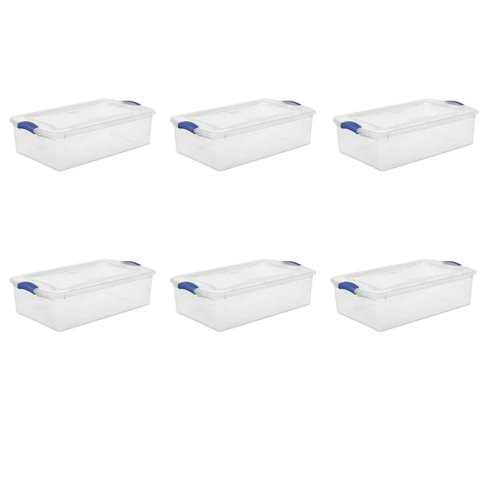 32 Qt. Set di 6 Contenitori in Plastica Blu Stile Stadio con Chiusura a Scatto