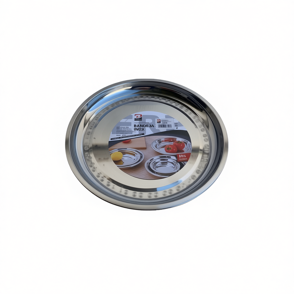 Vassoio Rotondo in Acciaio Inox a Singolo Livello da 32cm, Minimalista, per Uso in Cucina