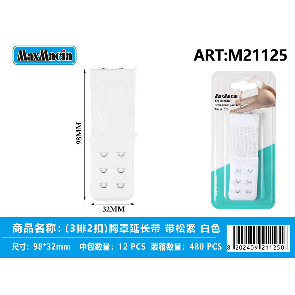 Estensore reggiseno bianco 32mm con 3 righe e 2 ganci Design elastico per una vestibilità confortevole