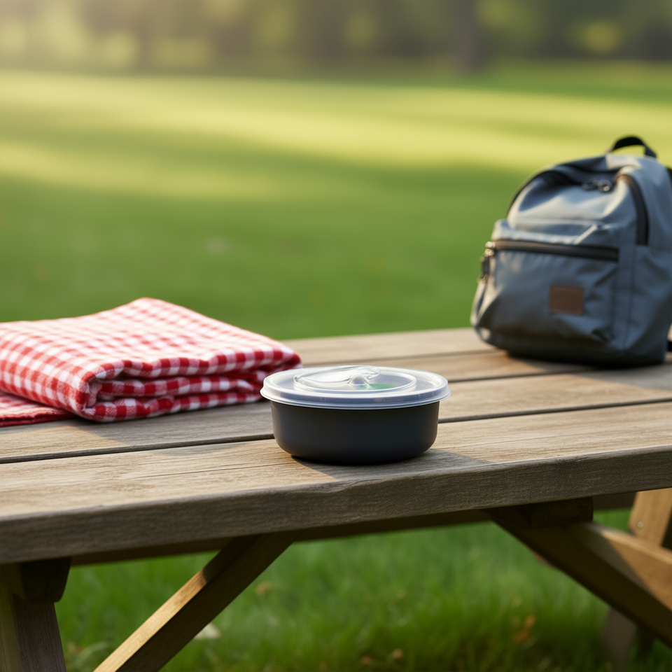 32oz Round Base PP Food Storage Container with Vented Lid & Spork for Home & Outdoor Use