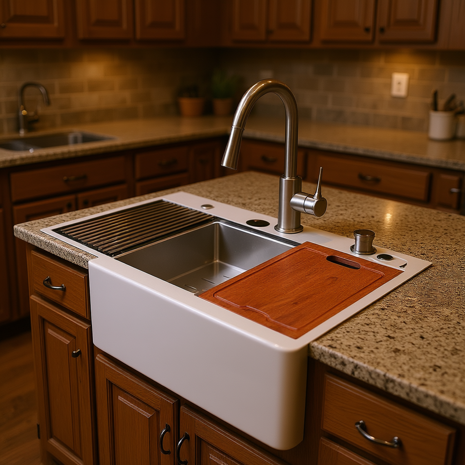 Lavello da Cucina in Acciaio Inossidabile Stile Rustico 33x22x10 Pollici, Montaggio Superiore, con Frontale a Grembiule, Vasca Singola