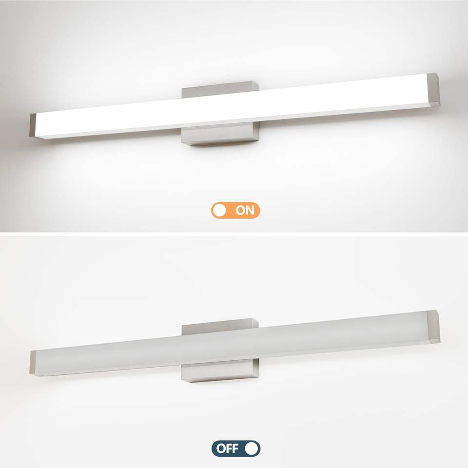 Lampada LED da 33 Pollici 18W 6000K Bianco Freddo per Specchio da Bagno, Illuminazione a Parete con Design Quadrato in Nichel Spazzolato