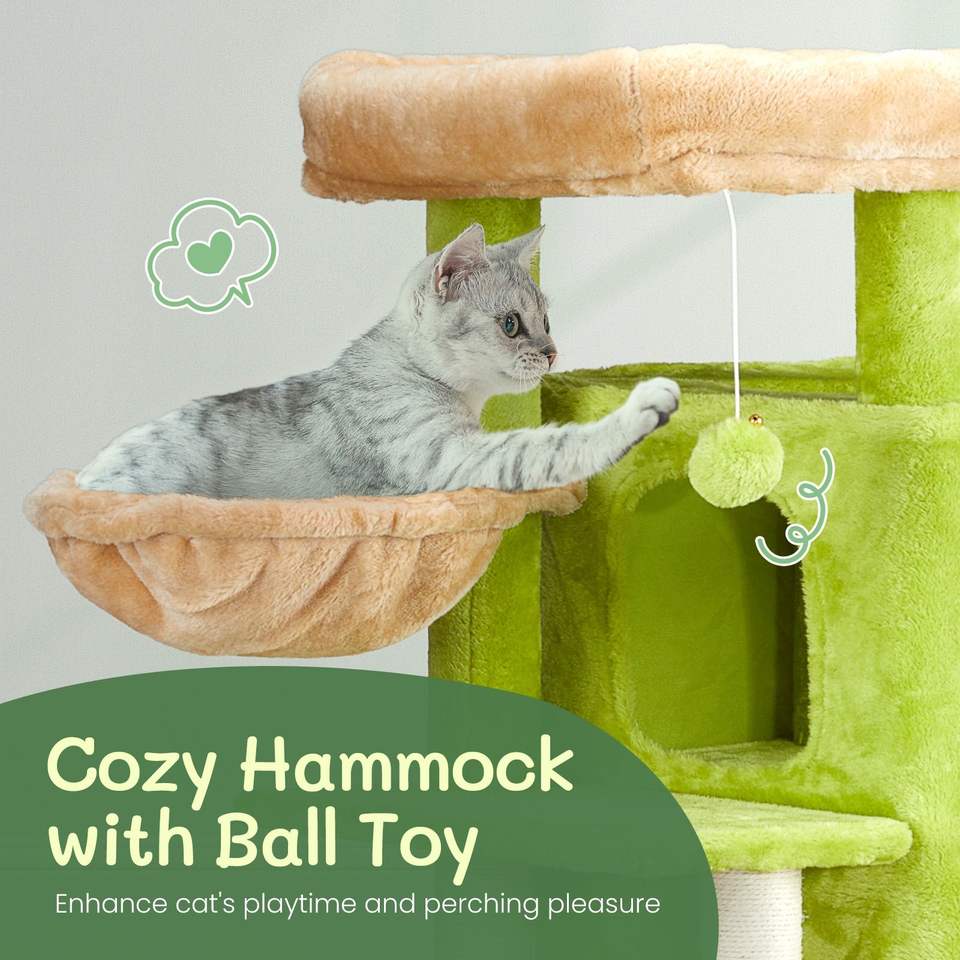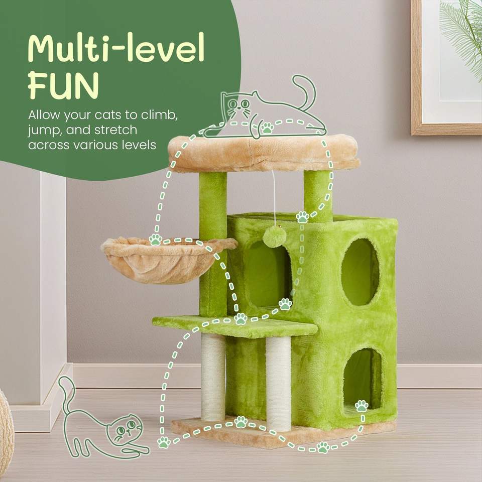 33-Inch Yellow Green Dual Layer Cat Tree Speaker Style Condo Hammock Sisal Plush Fabric Indoor Climbing Scratching Play