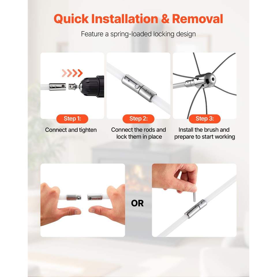Kit per la Pulizia del Camino Estensibile da 10 Metri con Doppia Testa Spazzola - Set e Accessori per Camini - Spazzola Gogg per la Pulizia del Camino