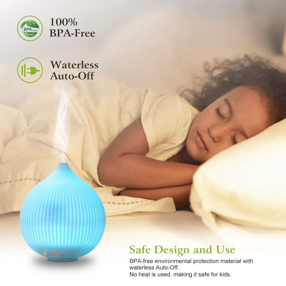 Diffusore di Oli Essenziali a Ultrasuoni da 330ml con Nebbia Fredda, 7 Luci LED Colorate e Funzione di Spegnimento Automatico Senza Acqua