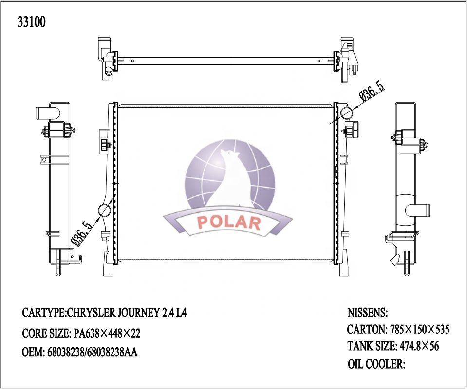 Radiatore di Raffreddamento Auto 33100 per Dodge Journey 2019-2020, Ricambio OEM 68038238AA 68038238 per Fiat Doblo Cargo/Fiorino