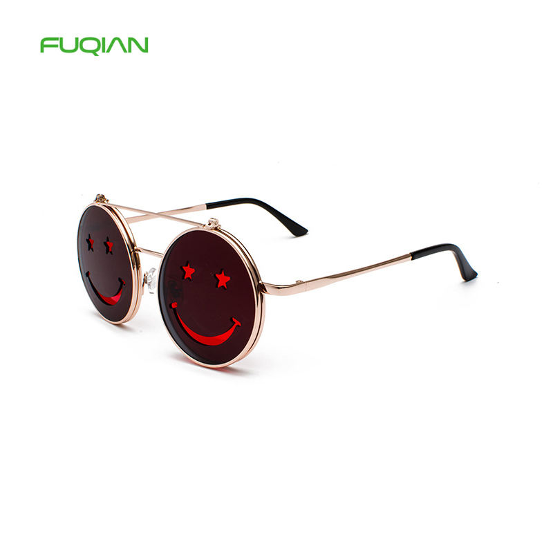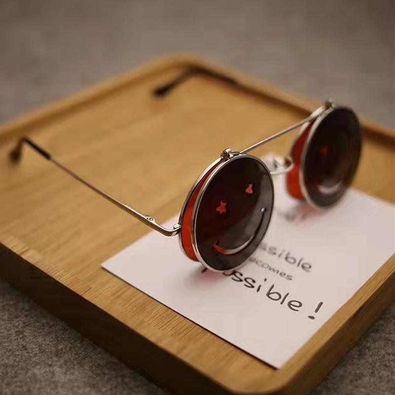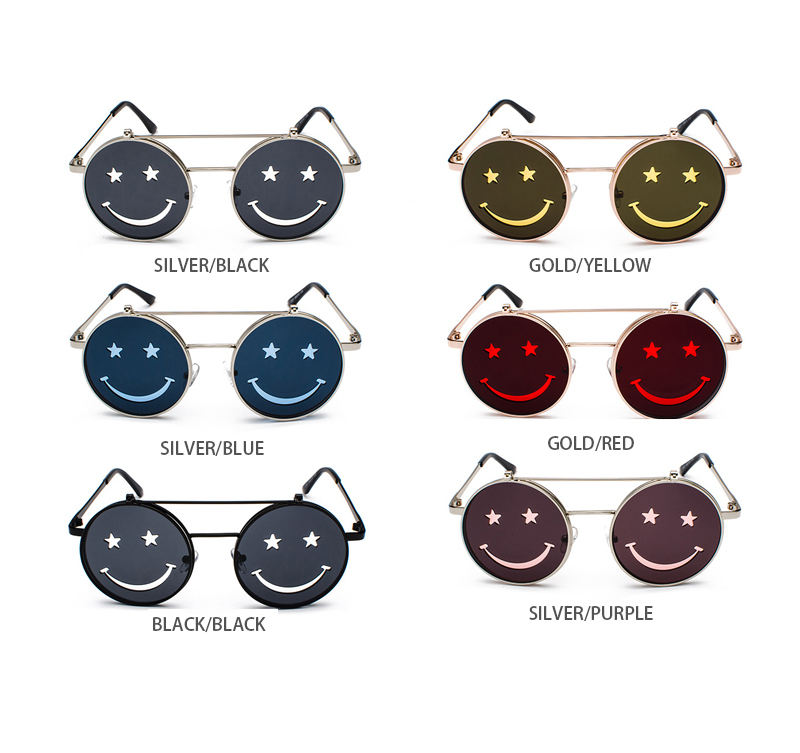 3321 Harajuku Style Smiling Face Flip Double Sunglasses for Men Women Gold Silver Metal Fashionable Renovate Glasses for Party