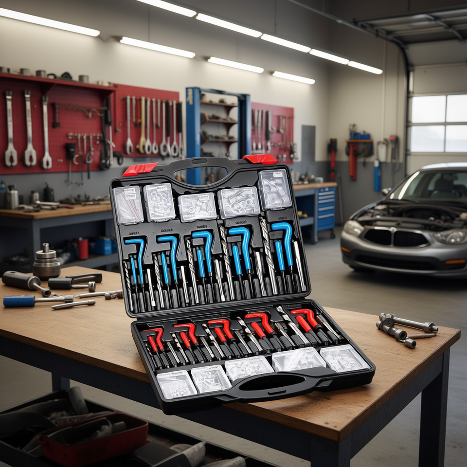 Kit di Riparazione Filetti Helicoil 338 Pezzi SAE Metrico in Acciaio per Attrezzature di Riparazione Carrozzeria