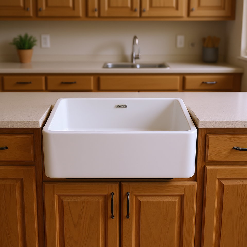 Lavello da Cucina a Vasca Singola in Ceramica Bianca Stile Rustico 33x20 Pollici con Frontale a Grembiule
